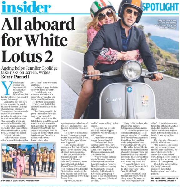 The Sunday Telegraph • 30th October 2022 All Aboard The White Lotus 2 The stars of the hit HBO series talk to me about filming the second season.